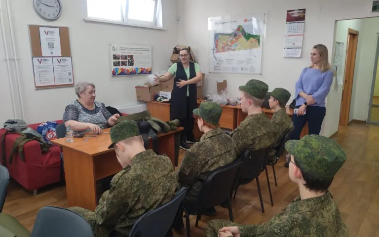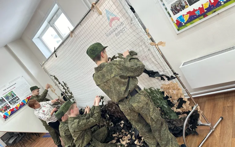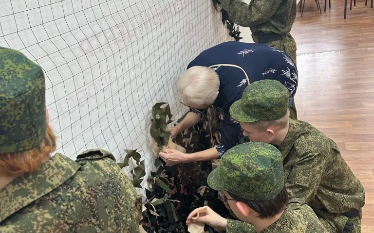 Члены инициативной группы ТОС «Матрёшкин двор» и АНО «Сибирская поддержка» обучали учащихся школы №217 - участников движения «Юнармия» изготовлению маскировочных сетей от начала и до конца. Перед началом плетения председатель ТОС «Матрёшкин двор» Виктория Вагнер и специалист по связям с общественностью ресурсного центра Васильева Е.В. рассказали насколько необходимы и важны маскировочные сети для военнослужащих и для чего они применяются.
