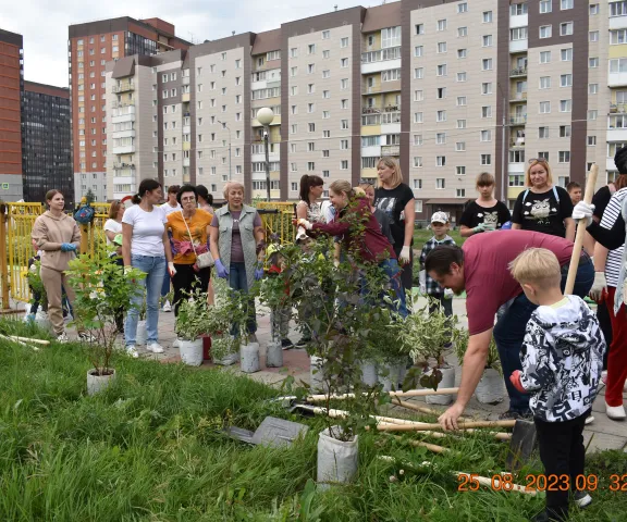 В этом году было высажено 246 саженцев деревьев и кустарников на восьми муниципальных территориях. Саженцы были предоставлены НГОО «Городской центр садоводства» при поддержке управления общественных связей мэрии Новосибирска.