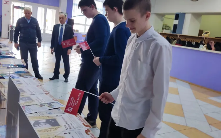 Ребята с большим интересом относятся к этому событию: внимательно изучают выставку перед начало мероприятия, затем, в ходе презентации, вдумчиво смотрят видеохронику и слушают выступления участников молодежного актива, которые рассказывают о Героях Советского Союза разных национальностей.