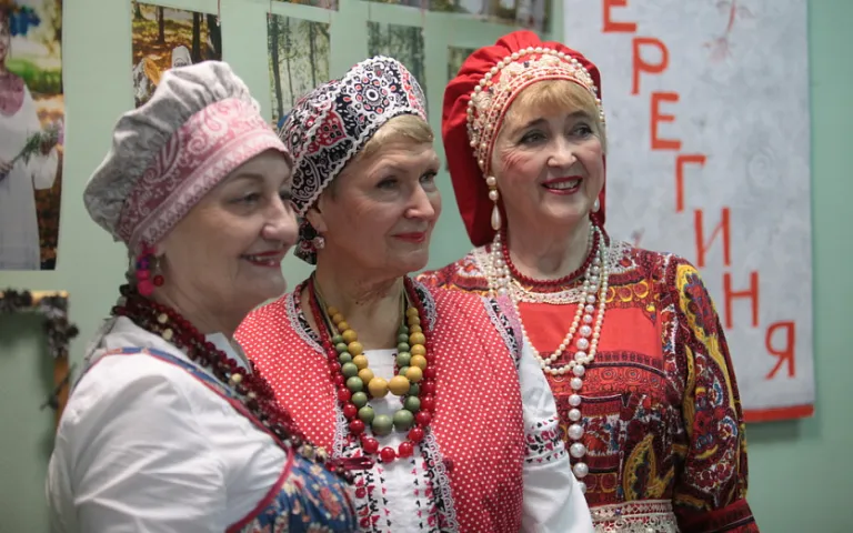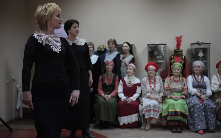 «Мы не делаем реконструкцию народного костюма. Мы создаём современный костюм с элементами народного. Тут в основном пенсионеры — бюджет, сами понимаете, ограниченный. Мы стали создавать костюмы на основе имеющегося гардероба. Дамы приносят свою одежду, и мы смотрим, как можно добавить элементы русского костюма», — рассказала руководитель творческого объединения «Кружева» Надежда Митюкляева.