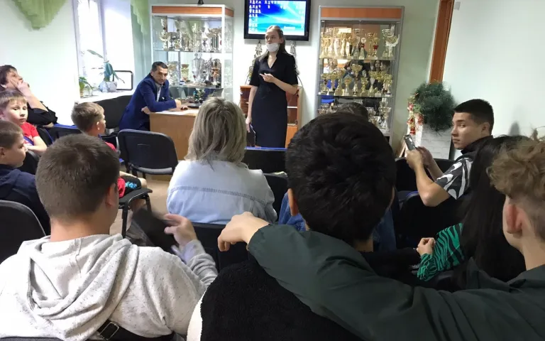 На мероприятии присутствовали несовершеннолетние жители микрорайона, сотрудник ПДН отдела полиции 6 Октябрьский, медицинский психиатр.