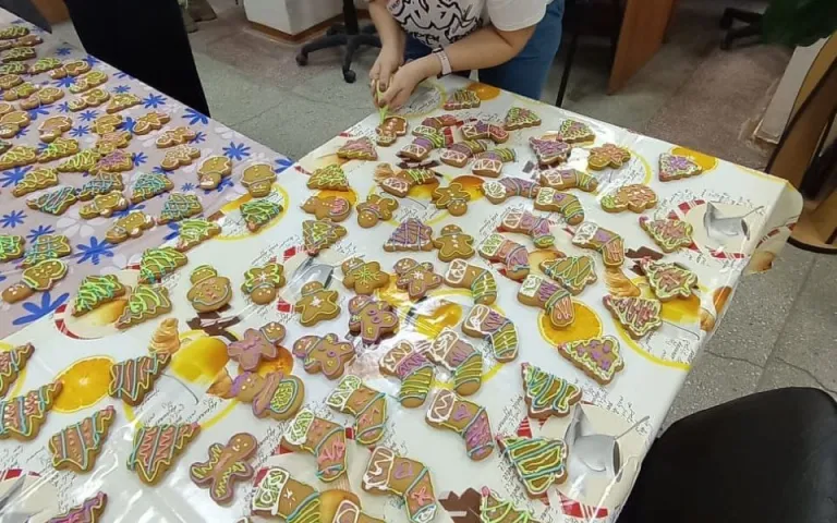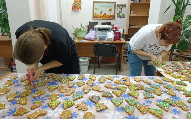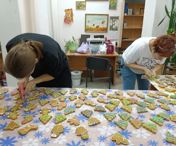 В Ресурсном центре общественных объединений Советского района (ул. Новоморская, 12 МКУ «Активный город») волонтеры «ГУМ. Помощь. Zа наших» (руководитель Оксана Никонова) https://xn–—8kcdctds6beigzfk0d.xn—p1acf/ приготовили новогодние пряники для военнослужащих СВО. В мероприятии приняли участие не только взрослые, но и дети.