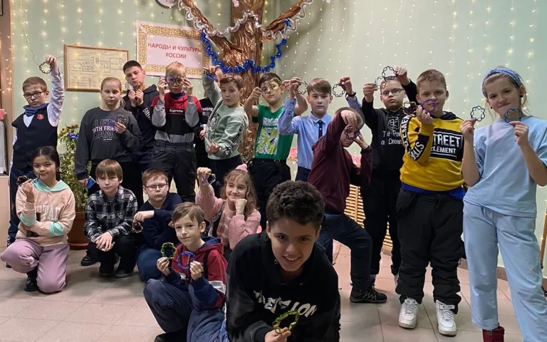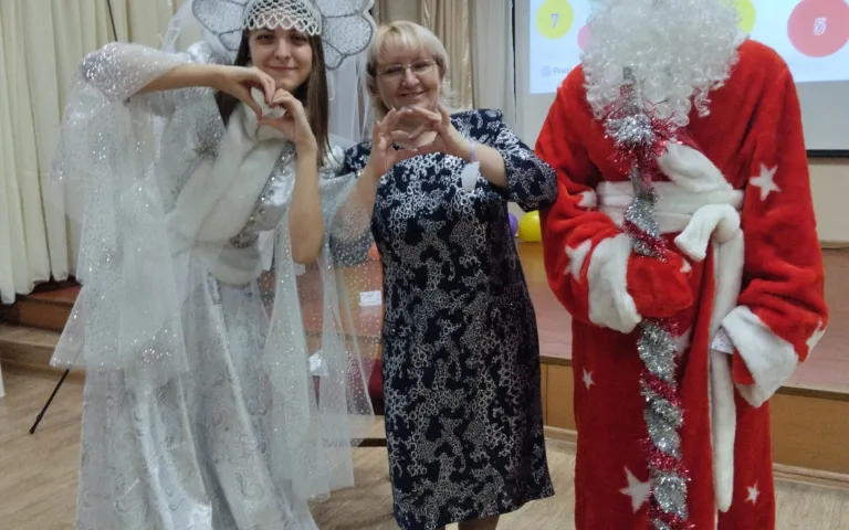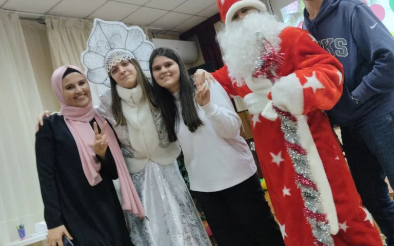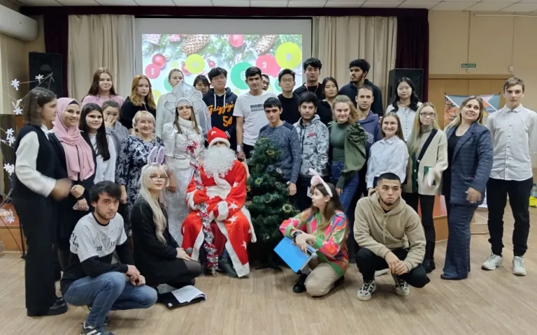 В игровой форме, ребята познакомились с коллегами Деда Мороза и приняли участие в разных конкурсах, оформляли открытки, танцевали и разыгрывали сценки, водили хоровод. Иностранные студенты вещали со сцены на своем родном языке, в числе которых звучала китайская и английская речь.