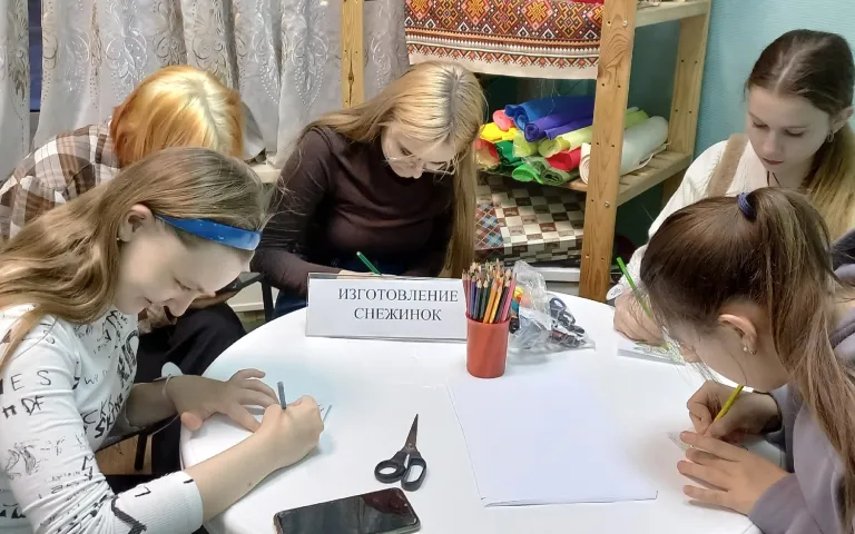 Книжно-предметные выставки и мастер-классы посетили дети из №20, №187, №128, №15 и №92 школы и детский сад №342, изготовили своими руками украшения на елочку в виде снежинки, снеговичка и шапочки, а так же сделали куклу-стригушку, которая «умеет» танцевать.