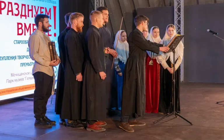 Гости проследовали на праздничную площадку, которая была организована на территории Парка музеев «Галерея времени». На улице работала старообрядческая ярмарка, полевая кухня; а участники фольклорного ансамбля «КрАсота» проводили детскую игровую программу с самыми юными гостями праздника.