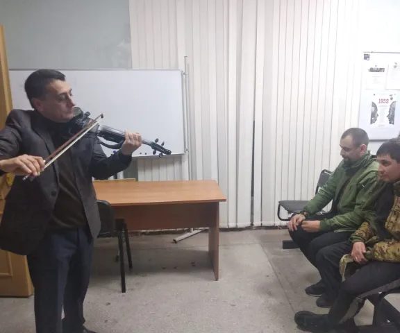 Новосибирский скрипач-виртуоз Давид Агинян поздравил добровольцев с годовщиной. Его отец Гамлет Арташесович активный участник плетения маскировочных сетей в пункте плетения, расположенном в Ресурсном центре общественных объединений Советского района (ул. Новоморская, 12, МКУ «Активный город»). Он подарил добровольцам музыкальный подарок, сыграв несколько мелодий своего сочинения. Концерт состоялся благодаря поддержке звукорежиссера Михаила Чубченко.