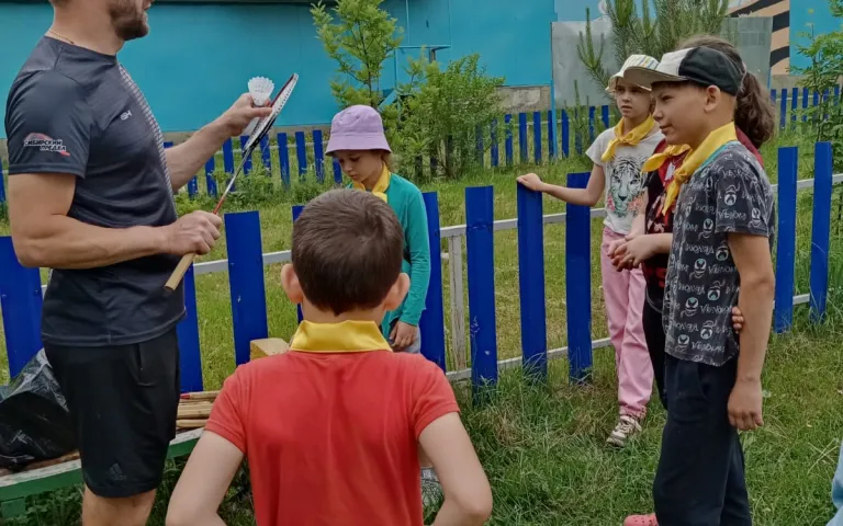 День седьмой. Сегодня мы отправились в плавание и совершили несколько остановок. 1.Причал. «Бодрое утро» . На ней, наши дети хорошенько размялись и поучились играть в бадминтон под руководством инструктора МАУ СТАДИОНА.