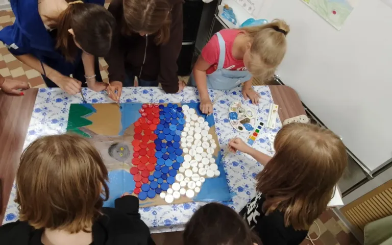 4.Четвертая стоянка-познавательная.На ней мы узнали: Почему наш флаг трёх цветный.Что за праздник- 12 июня.Кто написал Гимн. И что изображено на Гербе. 5.Остановка- «Яблочный десерт» . Поход в столовую за вкусным обедом. 6.Шестая остановка - творческая мастерская. Где дружно создали картину. Рисовали,красили и клеили. Творили 🇷🇺😉