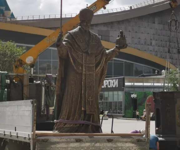 Огромный памятник Николаю Чудотворцу поставили возле Нарымского сквера
