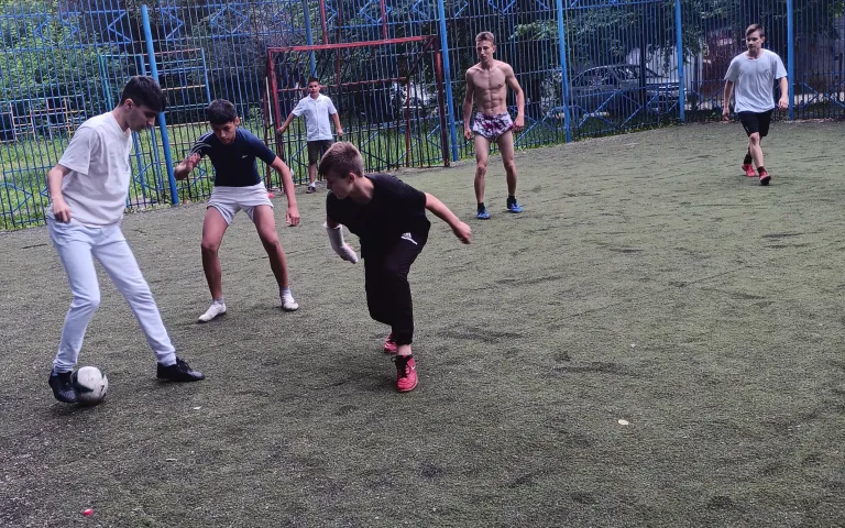 Открытие спуска отметили дворовым турниром по футболу между командами ТОС5 и ТОС7. Результат матча 2:2. Все участники остались довольны.
