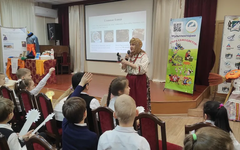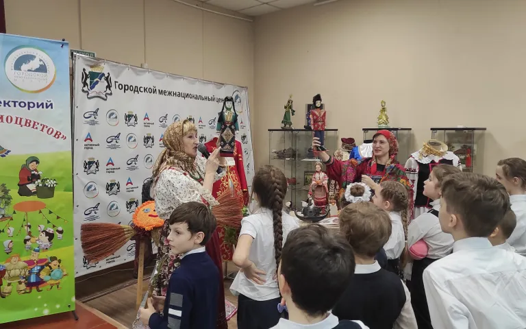 25 февраля Городской межнациональный центр распахнул свои двери для необычной встречи мультпроекта «Гора самоцветов». Во второй день Масленицы, Заигрыш, второклассников из СОШ №20 встретили не в зале, а прямо на улице. Встретили блинами, но особенными (!), с вопросами каверзными. Путь в гостеприимные стены был тернист – без разгаданных загадок вход заказан! Лишь пройдя испытание, ребята оказались на выставке, где и началось самое интересное. Многие и не знали, что Масленицу празднуют разные народы, а не только русские.