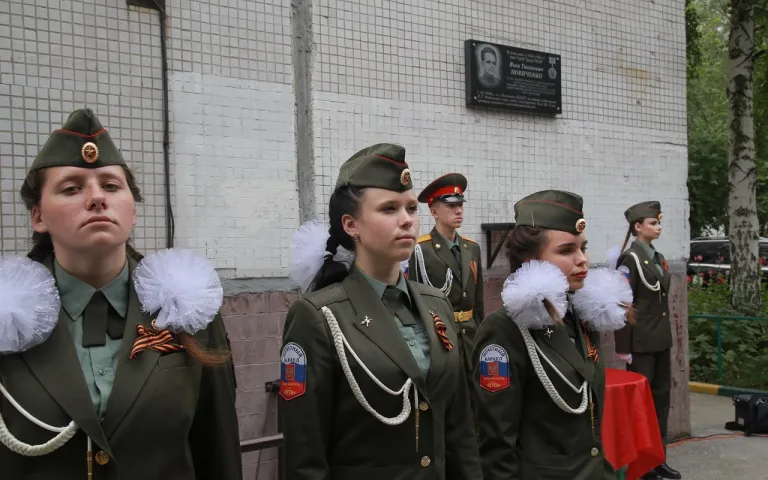 В почетном карауле у памятной доски стояли курсанты городского гражданско-патриотического центра «Витязь».