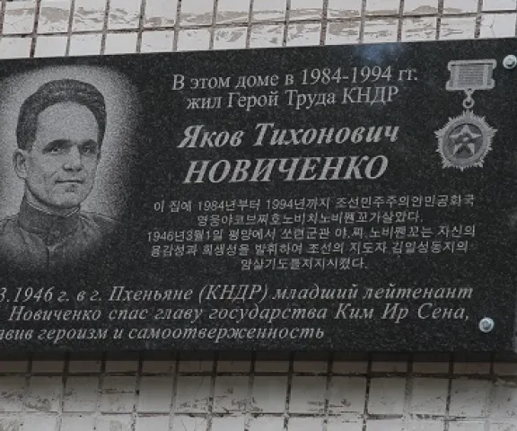 76 лет назад -1 марта 1946 года – младший лейтенант советской армии Новиченко Яков Тихонович участвовал в охране митинга, посвященного годовщине освобождения Республики от японской оккупации. Молодой офицер увидел гранату, брошенную в сторону Ким Ир Сена, и перехватил ее. Бросить ее в сторону было нельзя – кругом стояли люди, тогда Новиченко лег на гранату. Жизнь герою спасла книга «Брусиловский прорыв», заткнутая под шинель.