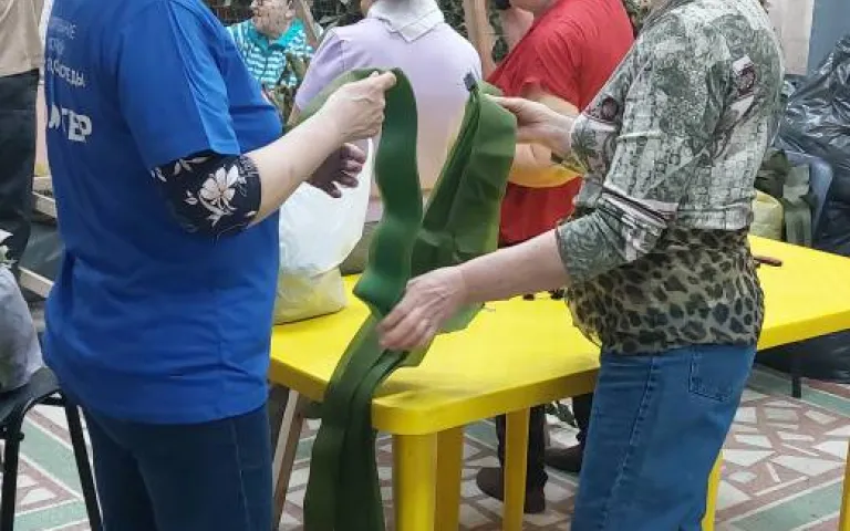 В Ресурсном центре Калининского района идет голосование за формирование комфортной среды в Сосновом бору Калининского района. Волонтеры, делающие маскировочные сети, проголосовали за благоустройство Соснового бора, место, где многие волонтеры занимаются скандинавской ходьбой.