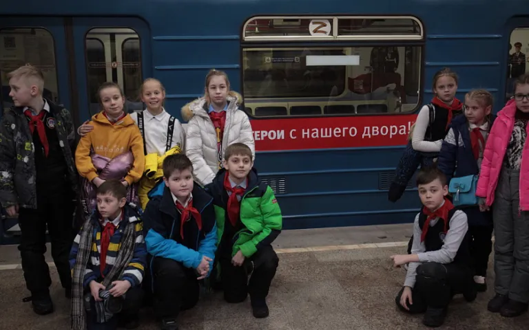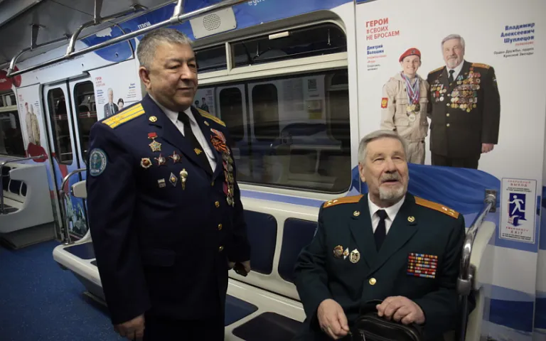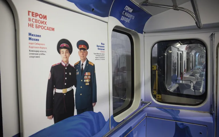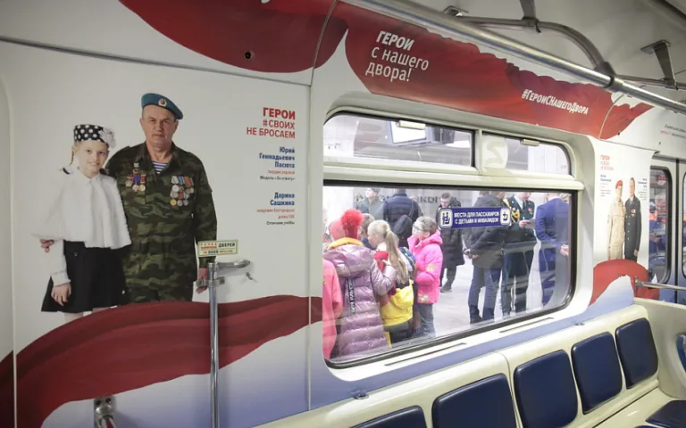 Это часть большого проекта — «Герои с нашего двора». Четыре вагона будут курсировать в метро около полугода.