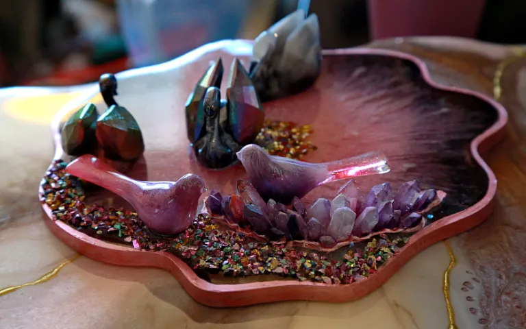 Сначала я окончила специальную школу и научилась базовым принципам работы с эпоксидной смолой, потом начала изучать отдельные техники на мастер-классах. И вот теперь могу придумать что-то своё, воплотить задумку и любоваться», — говорит Елена.