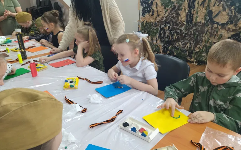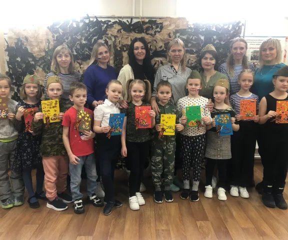 В результате мастер-класса дети смастерили открытки – аппликации из цветной бумаги, картона, георгиевских лент и пластилина. Ребята с большим интересом следили за объяснениями, с удовольствием подбирали цвета. Такие оригинальные открытки дети подарят своим папам, дедушкам, братьям в честь самого мужского праздника.