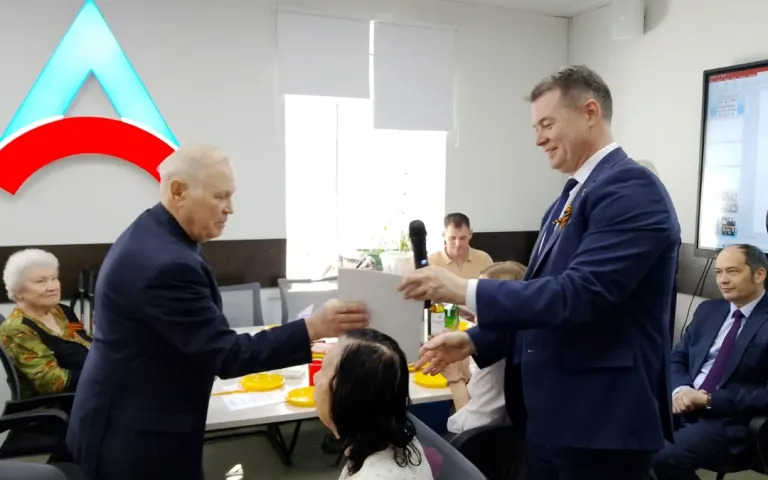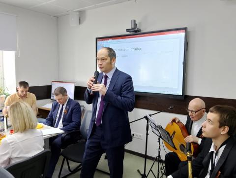 Глава администрации Центрального округа Владимир Захаров и зампредседателя Совета депутатов города Антон Тыртышный наградили ветеранов грамотами и подарками за патриотическую работу с молодёжью. Встреча прошла в тёплой и дружеской атмосфере.