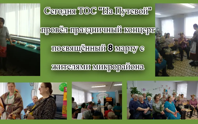 Выберите оценкуGive it 1/5Give it 2/5Give it 3/5Give it 4/5Give it 5/5 Город соседей 06.03.2023 Праздничный концерт к 8 марту ТОС «На Путевой» Просмотров: 9 Сегодня ТОС «На Путевой» провёл праздничный концерт посвящённый 8 марту с жителями микрорайона Фотографии Image Отзывы