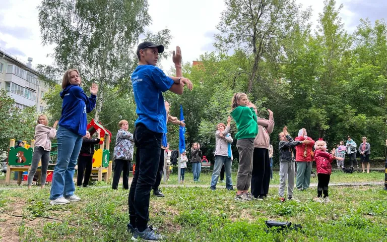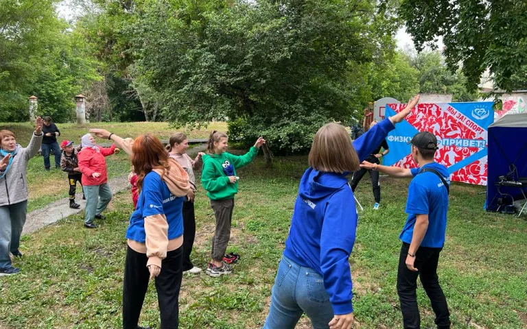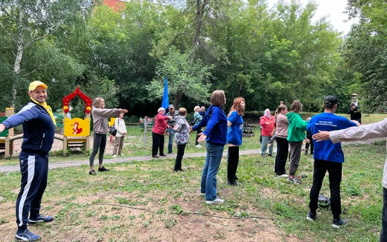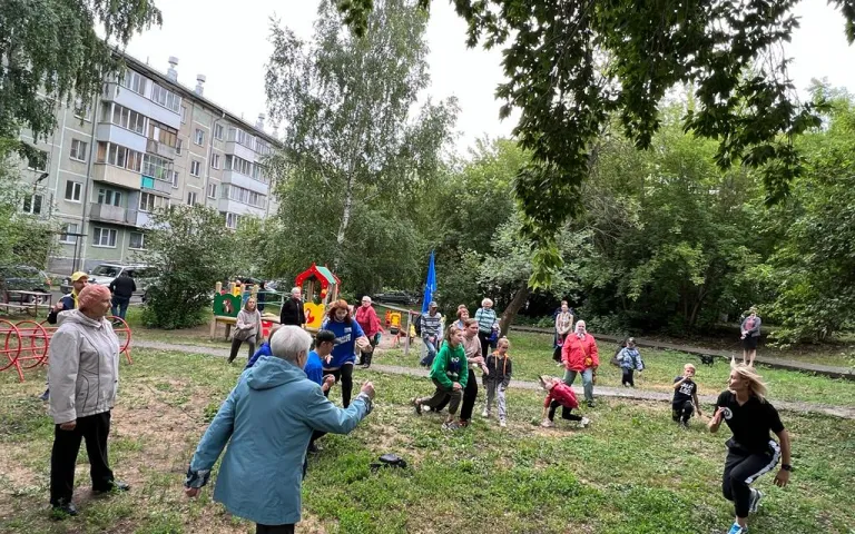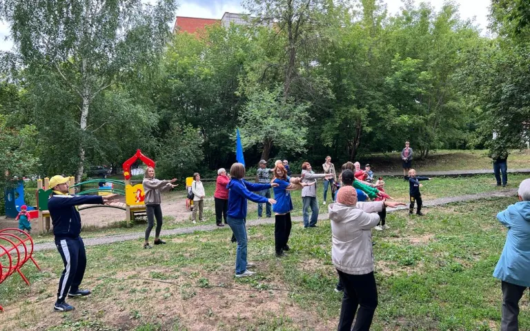 Несмотря на «нелетную» погоду, самые активные и спортивные жители ТОСов «Тулинка» и «Новогодний» собрались, чтобы вместе разучить комплекс утренней гимнастики на свежем воздухе. Под бодрую музыку все с задором разучивали движения и с воодушевлением повторяли за тренером упражнения. А вела зарядку кандидат в мастера спорта по пауэрлифтингу Светлана Полетаева. Даже начавшийся мелкий дождик не помеха. Рядом и взрослые, и дети. соревнования на выносливость, гибкость, стойкость и быстроту объединили все возраста. Бабушки участвовали в конкурсах наравне с внуками. И в викторине каждый мог блеснуть эрудицией, да еще и получить сувенир на память. Хорошо позанимались, пообщались, сформировали команду спортивных единомышленников