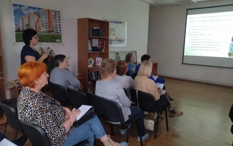 В ходе мероприятия присутствующие познакомились с важной информацией об особенностях принятия наследства, о подаче заявления по месту открытия наследства нотариусу, о том какая категория граждан обладает правом на обязательную долю в наследстве, о том, что наследуется не только имущество, но и долги, и кредиты.