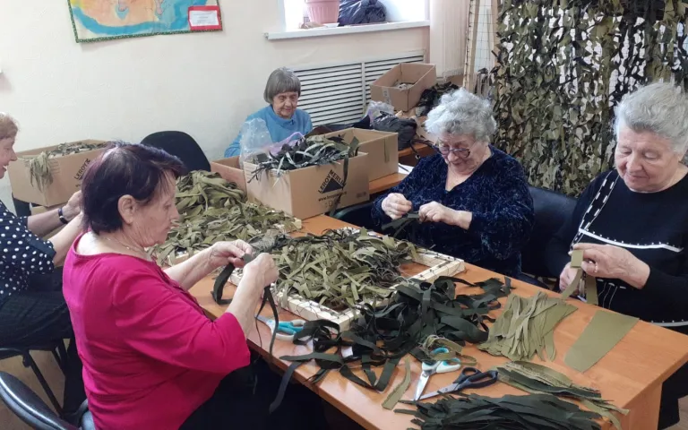 Кроме плетения маскировочных сетей, все желающие могут внести посильный вклад в поддержку военнослужащих СВО принося в РЦОО гуманитарную помощь – купленную на свои деньги либо изготовленную своими руками.