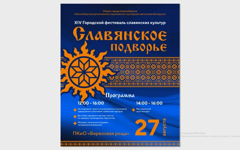Новосибирская региональная национально-культурная автономией белорусов приглашает всех новосибирцев и гостей города на XIV фестиваль славянских культур «СЛАВЯНСКОЕ ПОДВОРЬЕ».