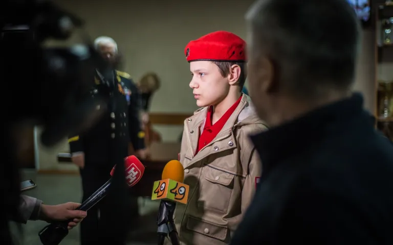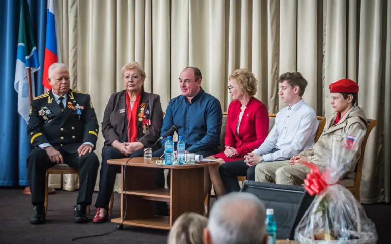 В зале присутствовало молодое поколение патриотов, в лице руководителя молодежного крыла «Бессмертного полка» НСО и курсанты отряда юнармейцев им. Бакулева.
