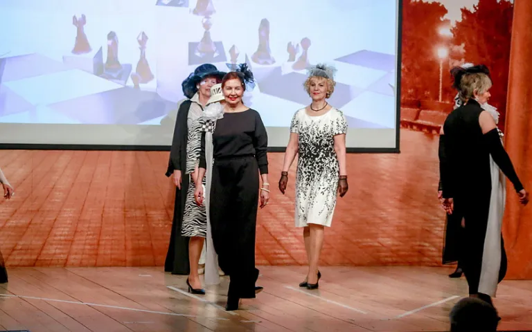 Модный показ представили женщины элегантного возраста — воспитанницы новосибирской студии стиля. Несколько месяцев они учились красиво двигаться, держать осанку, подбирали наряды и аксессуары. И теперь смело выходят на подиум перед публикой.