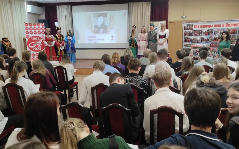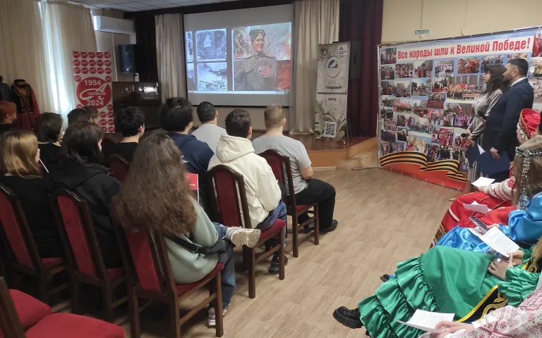 В год 80-летия Победы в Великой Отечественной войне студентам и школьникам напомнили о сплоченности, героизме и стойкости многонационального советского народа. Ребята на полчаса перенеслись во времени в 40-годы прошлого века, когда бушевала Великая Отечественная война. Кадры кинохроники, рассказ о событиях этого периода в истории страны и Новосибирска.