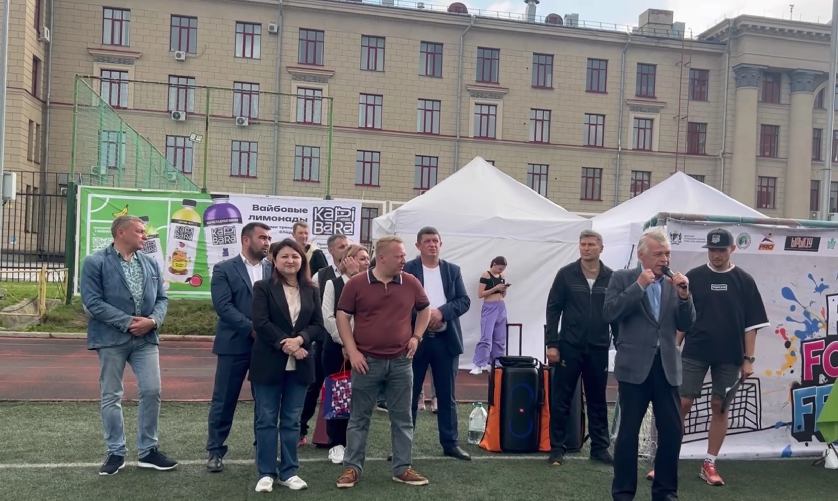 24 августа 2025г. на стадионе Сибирского Государственного Университета Путей Сообщения (Залесского, 3/1) по инициативе Новосибирской региональной общественной организации «Узбекско-Русский национально-культурный центр», состоялся патриотический товарищеский футбольный турнир, посвящённый празднованию 80-летия Победы. Организаторами выступили филиал Государственного фонда «Защитники Отечества» по Новосибирской области, Новосибирская региональная общественная организация «Узбекско-Русский национально-культурный центр», Уполномоченный по защите прав предпринимателей в Новосибирской области, АНО ДО «Федерация Развития Футбола». Патриотический товарищеский футбольный турнир прошел с привлечением участников СВО, регионального отделения Всероссийского детско-юношеского военно-патриотического общественного движения «Юнармия». Цель мероприятия - пропаганда спорта, патриотизма и семейных ценностей, а также межнациональная дружба. На награждении участников патриотического товарищеского футбольного турнира, посвящённого празднованию 80-летия Победы с приветственным словом выступил начальник управления общественных связей мэрии города Новосибирска Щукин Игорь Викторович! Мероприятие прошло в рамках семейного фестиваля футбола «Праздник, где в футбол играют все». Около 1500 семей с детьми стали участниками мероприятия. Весь день на мероприятии была предоставлена бесплатная программа: мастер-классы: семейный футбол, весёлый футбол гигантским мячом, открытые блиц-игры по разным видам футбола, спортивные состязания: соревнование на меткость, выносливость, точность и силу, а также угощения и подарки для детей.