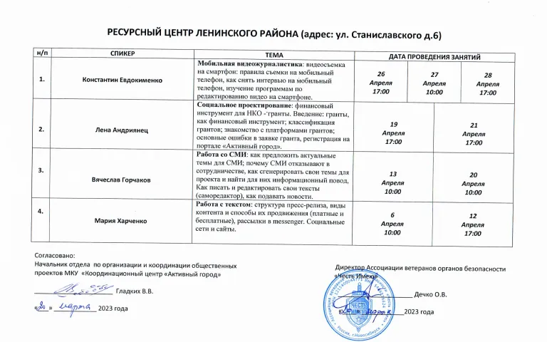 В сентябре 2022 года некоммерческой организацией «Ассоциация ветеранов органов безопасности «Честь Имею», при поддержке Министерства региональной политики Новосибирской области, реализован первый этап социально-значимого проекта - «Территория экспертов: НКО и новые технологии», направленный на повышение уровня компетенции представителей НКО и общественных объединений г. Новосибирска, в сфере продвижения (PR) и журналистики.