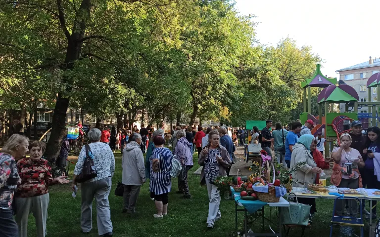25 августа 2022 г. на придомовой территории дома по адресу ул. Блюхера 31 ТОС «Выставочный» отпраздновал День соседей вместе с жителями микрорайона. Всех гостей ждала праздничная программа с организацией чайного стола, мастер-класс по художественной резке по овощам и фруктам, музыка, конкурсы (включая подарки победителям) и море хорошего настроения.