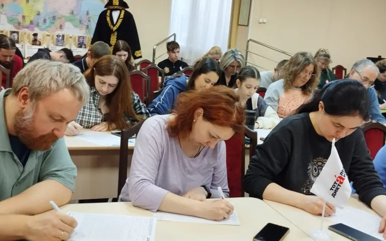 Одна из площадок расположилась в Городском межнациональном центре. Для написания диктанта здесь зарегистрировались 45 человек. Были те, кто уже несколько лет приходит проверить свою грамотность, и те, кто решил это сделать впервые. Любители русского языка собрались разного возраста: выпускники школы № 20, родители и ребята, которые учатся сейчас, педагоги.