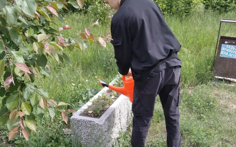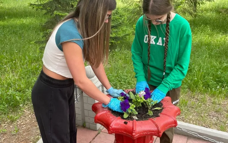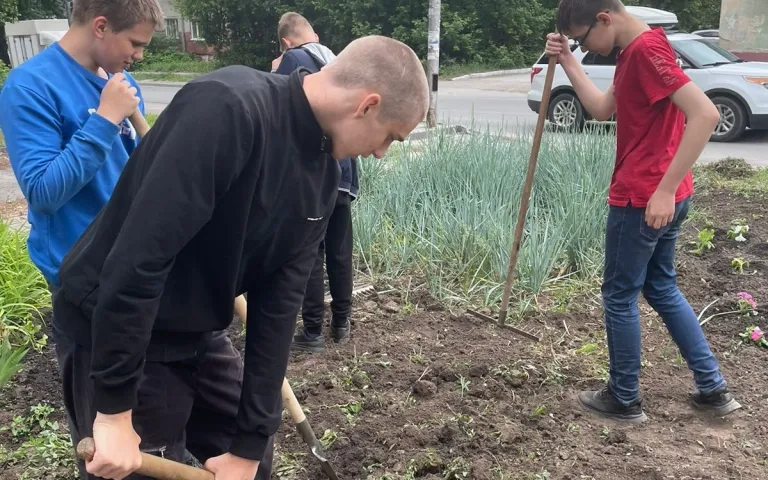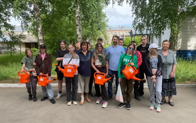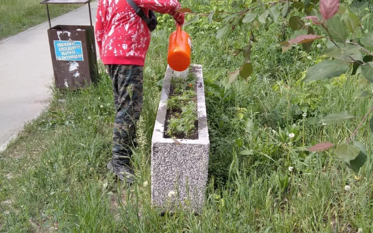 Трудовой отряд ТОС «Больничный городок» продолжает помогать в благоустройстве знаковых мест микрорайона. Депутат горсовета Антон Бурмистров вручил лейки ребятам и сам помог в поливке клумб у лавочки-улыбки. Другие ребята трудились и сажали цветы в клумбах у Алёши и на ул. Ветлужской у доски истории.