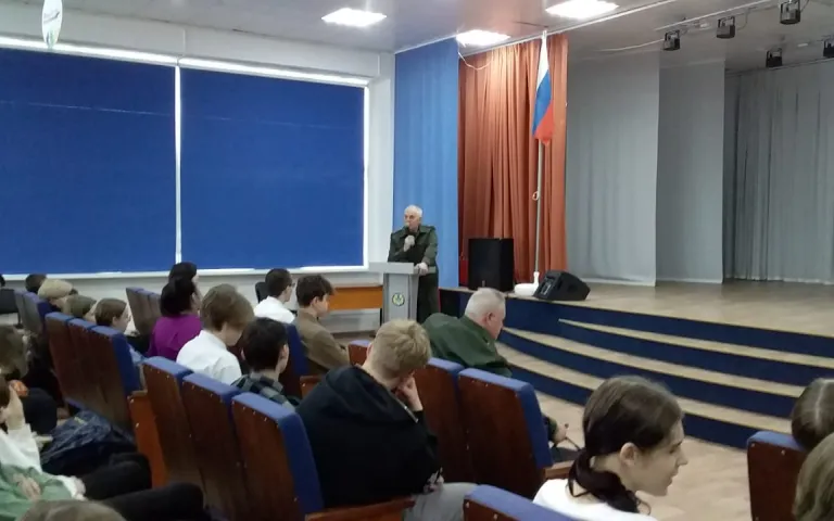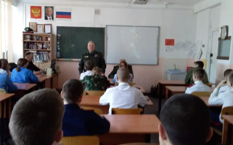 На уроке мужества с учащимися 8, 9, 10 классов инспекторы Центрального Военного округа Министерства обороны РФ генерал – майор Николай Александрович Тайлаков и генерал- майор Игорь Михайлович Харченко поделились своим видением политической обстановки, вспомнили исторические факты Берлинской операции, рассказали свою биографию, пути становления военной карьеры.