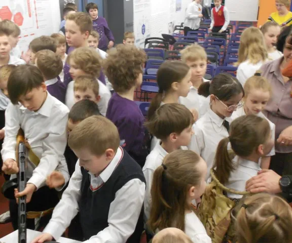 На мероприятии присутствовали председатель комиссии Шильтовская О.А., заместитель председателя комиссии капитан 3 ранга Яранцев С.И., член комиссии ветеран боевых действий старшина Костяной К.В., а также участники боевых действий. В ходе урока были продемонстрированы документальные фильмы, посвященные героическим подвигам защитников Отечества, показаны тематические слайды, а дети имели возможность задать вопросы ветеранам и услышать их живые рассказы о выполнении служебного долга.