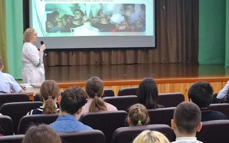 Перед началом лекции обсудили важность сохранения здоровья и избегания вредных привычек. Затем перешли к обсуждению вейпинга, его популярности среди молодежи и возможных последствий для здоровья.