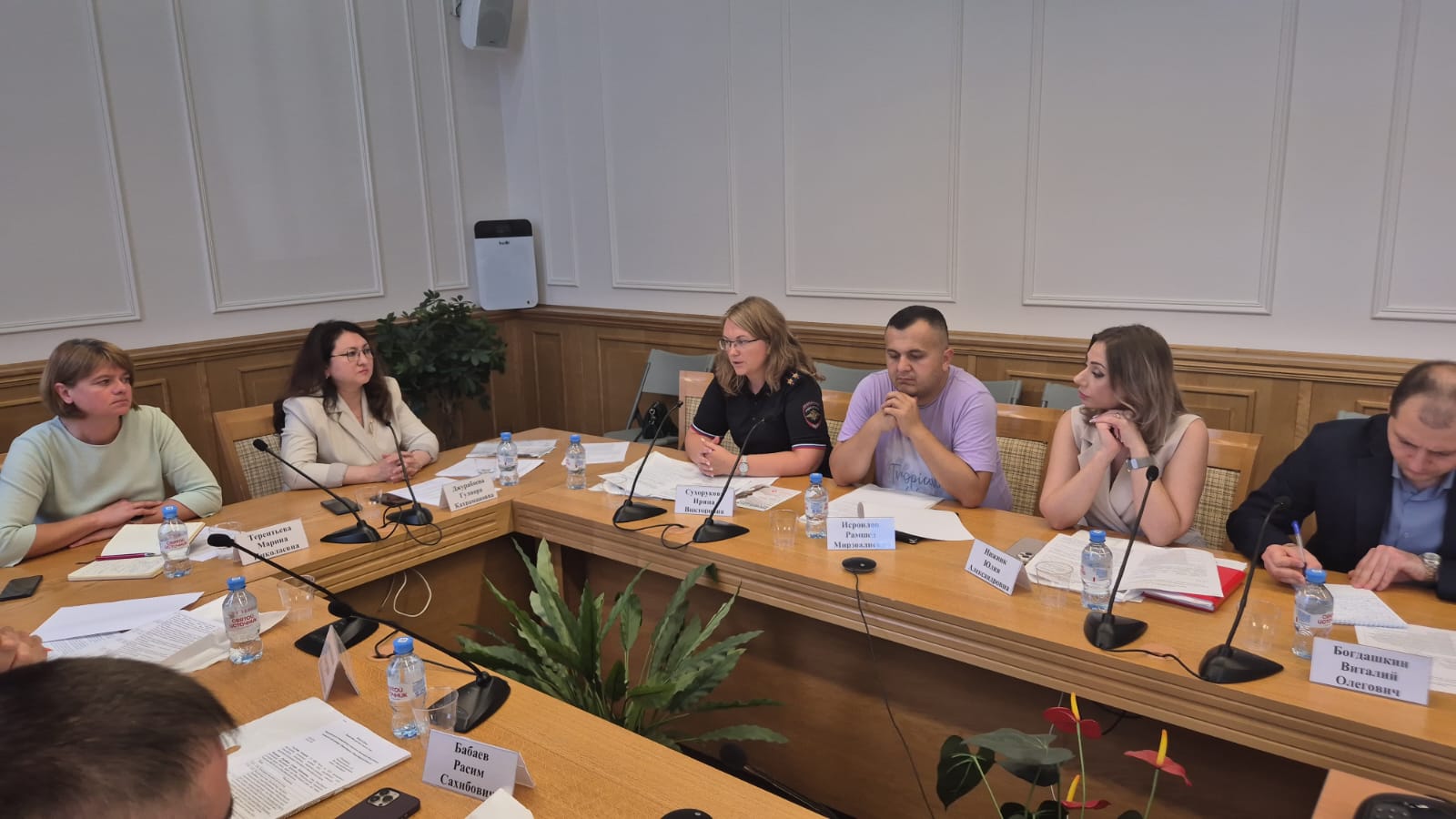 В круглом столе приняли участие: сотрудники полиции при ГУ МВД России по Новосибирской области, представители министерства региональной политики НСО, представители мэрии г.Новосибирска, представители министерства образования НСО, руководители национально-культурных автономий и национальных организаций г.Новосибирска и Новосибирской области. Модератором круглого стола выступила член Общественного совета при ГУ МВД России по Новосибирской области, глава Новосибирской региональной общественной организации «Узбекско-русский национально-культурный центр» Джурабаева Гулнора Кахрамановна.
