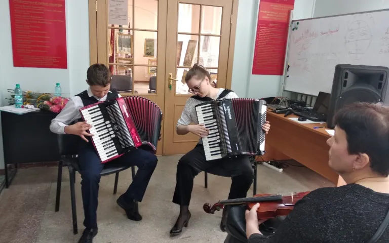 Ветеранов поздравили ученики МБУДО ДМШ № 9, под руководством педагогов Светланы Сергеевны Бобровниковой и Дарьи Леонидовны Еловиковой.