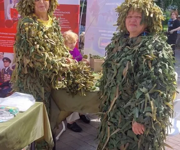 Благодаря ярмарке мы познакомились с местной организацией ВОИ Октябрьского района, волонтеры которой делают костюмы лешего (маскировочные костюмы) из самых простых и доступных материалов.