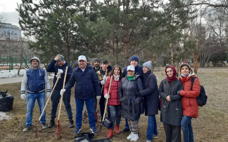 Помощь в уборке Нарымского сквера оказали волонтеры Новосибирской региональной общественной организации по содействию социально-правовой адаптации народов Памира «ПАМИР».