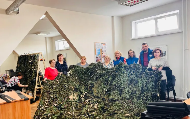 Встреча волонтёров пункта плетения маскировочных сетей ТОС «Матрёшкин двор» с участником СВО.