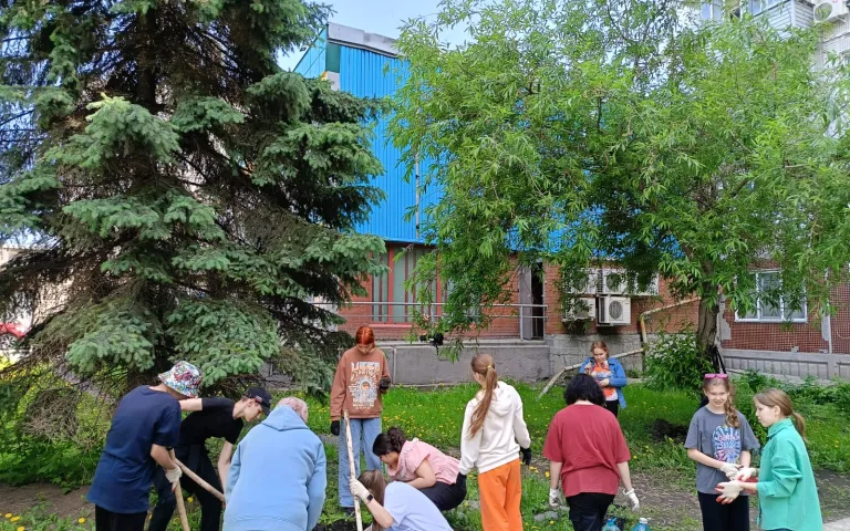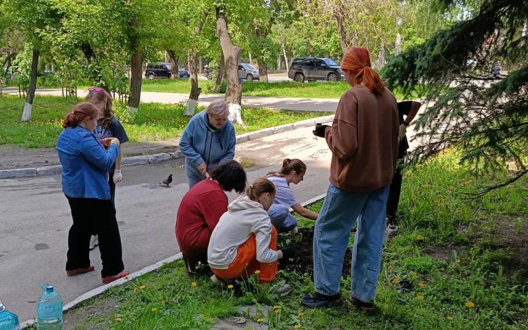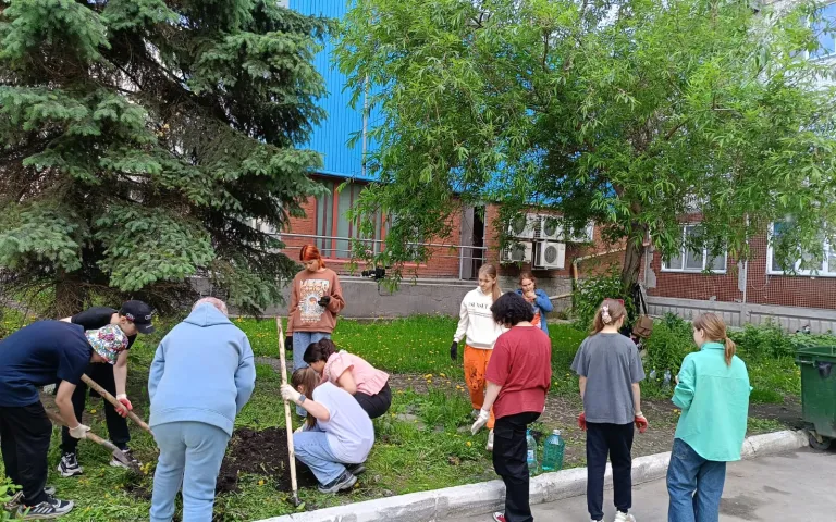 В рамках проведения летнего трудового отряда ребята высадили цветы на придомовой территории ул. Дуси Ковальчук, 20.
