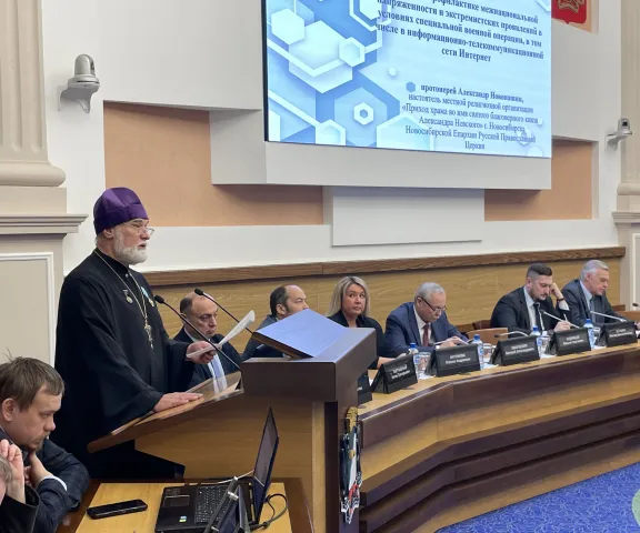 Заседание, которое возглавил заместитель мэра города Новосибирска Максим Константинович Останин, было посвящено мерам по профилактике межнациональной напряженности и экстремистских проявлений в условиях Специальной военной операции. Отец Александр выступил с докладом об информационных войнах. Основные тезисы доклада: