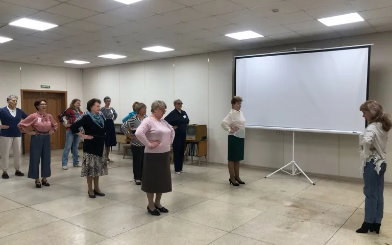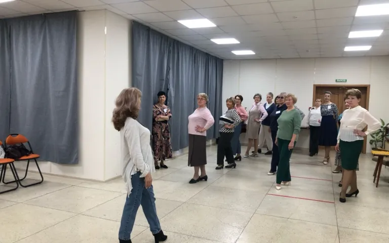 С такого призыва начала сегодня занятие по дефиле Татьяна Ремизовская для слушателей 10 группы Студии стиля «Элегантный возраст» в Советском районе.