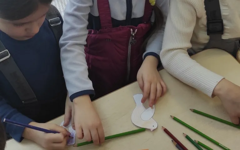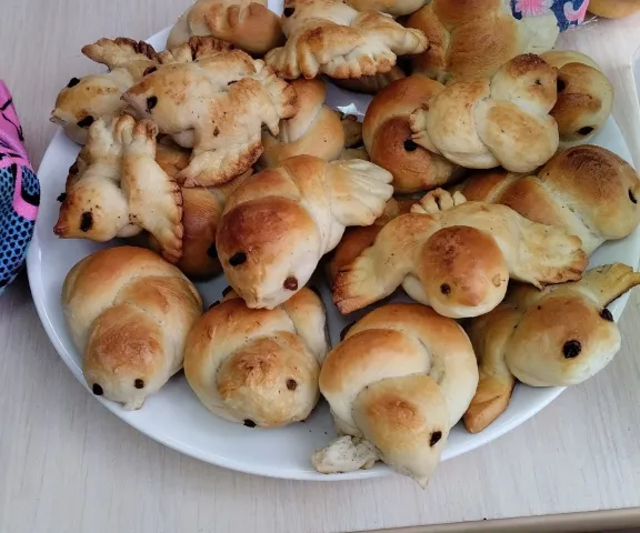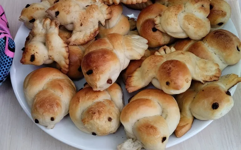 Дети усердно птичек рисовали да ими дерево украшали. Вместе с ведущим-куклой Прошкой учили веснянки и провели обряд закликания весны. Загадками да играми призывали снег перестать идти, чтобы солнышко выглянуло и стало теплее. А чтобы снег растопить и травке доступ открыть, угостились печенюшками-птичками и булочками-жаворонками! Главная традиция праздника – выпечка маленьких булочек в форме жаворонков для угощения ребят – уже второй год практикуется в Городском межнациональном центре и очень нравится малышам.