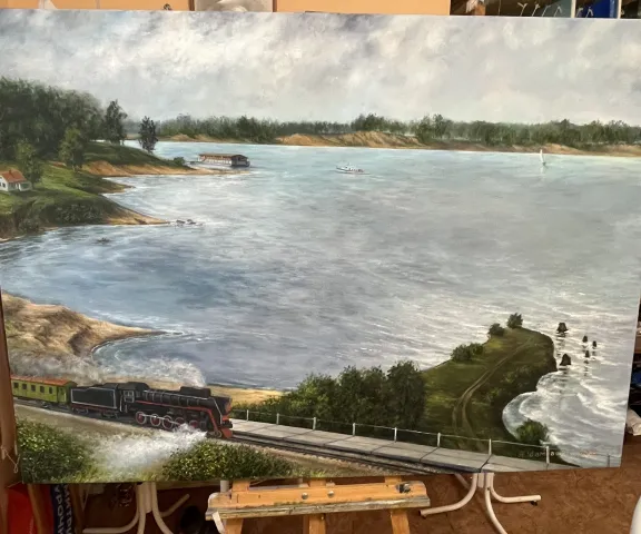 На железнодорожной станции «Сеятель» в Советском районе скоро появиться картина «Бердские просторы» написанная художником и руководителем творческой студии «Добро» Александром Евгеньевичем Шамовским.